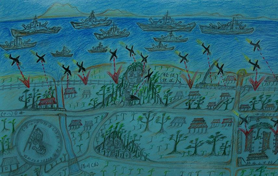 【沖縄戦の絵】 米軍上陸と空からの爆撃