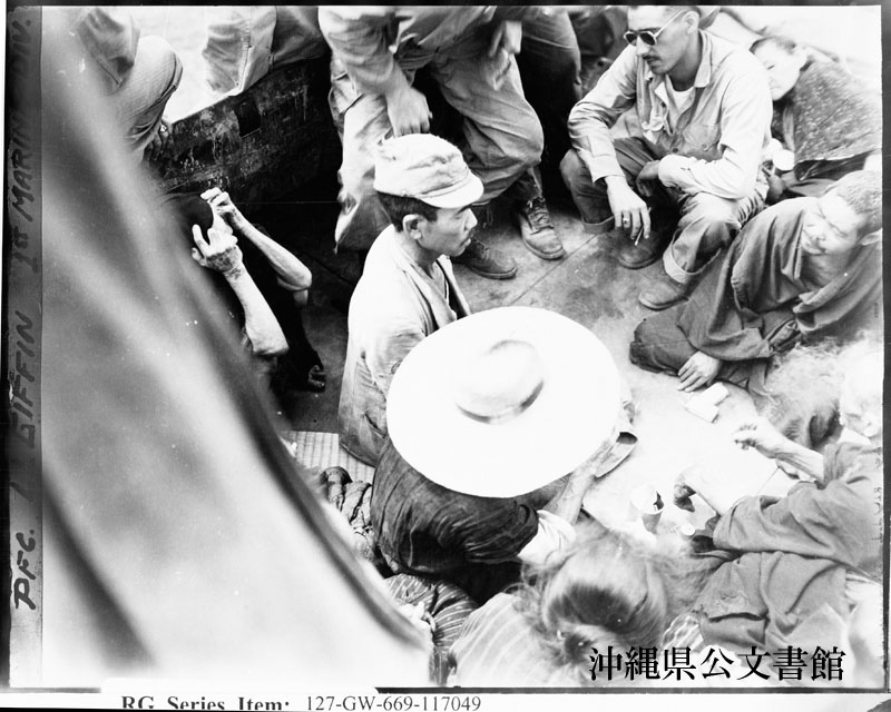 Okinawa-(Ryukyus) Natives-Okinawa Div. 7th Infantry. 沖縄の人びと、第7歩兵師団(1945年4月1日撮影)